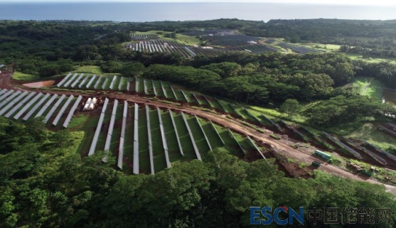 部署在考艾島南部海岸丘陵地帶的太陽能發(fā)電設(shè)施和電池儲能系統(tǒng)