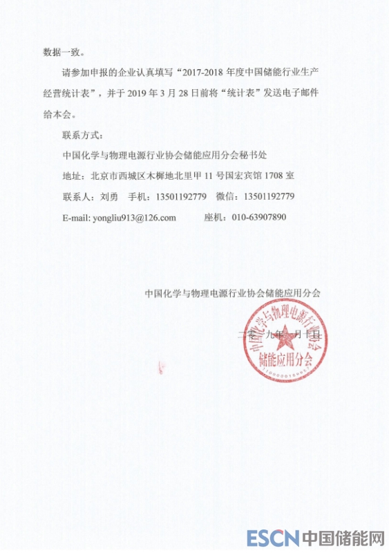 請(qǐng)參加申報(bào)的企業(yè)認(rèn)真填寫(xiě)“2017-2018年度中國(guó)儲(chǔ)能行業(yè)生產(chǎn)經(jīng)營(yíng)統(tǒng)計(jì)表”,并于2019年3月28日前將“統(tǒng)計(jì)表”發(fā)送電子郵件給本會(huì)。