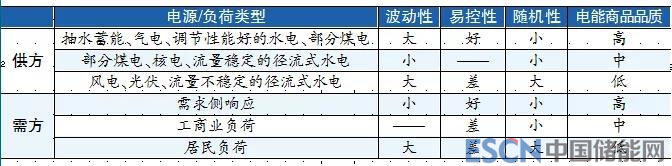 由于電能難以大量儲存,發(fā)用功率必須實(shí)時平衡,從對電力系統(tǒng)調(diào)度運(yùn)行和功率平衡的影響看,筆者認(rèn)為,電能商品品質(zhì)應(yīng)從波動性、易控性、隨機(jī)性3個維度進(jìn)行衡量。其中波動性指功率相對于自身容量的變化幅度;易控性指將功率在一定范圍內(nèi)自由調(diào)節(jié)的難易程度。隨機(jī)性與易控性有一定的關(guān)聯(lián),隨機(jī)性大的電源或負(fù)荷一定難于控制,而隨機(jī)性小的電源或負(fù)荷可能易控,如可靈活調(diào)節(jié)的資源,也可能難控,如功率相對固定的資源。對當(dāng)前各類常見供方(電廠)所生產(chǎn)和需方(負(fù)荷)所消費(fèi)的電能商品品質(zhì)可以給出表1所示的排級。需要注意的是,這僅按一般情況依照電能商品品質(zhì)高低對電源和負(fù)荷進(jìn)行大致分類,而非給電源或負(fù)荷“貼標(biāo)簽”。例如,如果品質(zhì)一般的煤電經(jīng)過靈活性改造,可升級為高品質(zhì)的調(diào)峰電源。