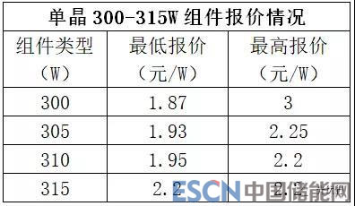 本次招標中,去除每標段最高報價和最低報價,多晶270W組件平均報價約為1.7元/W,多晶275W組件平均報價約為1.74元/W,單晶300-310W組件平均報價約為2.07元/W。