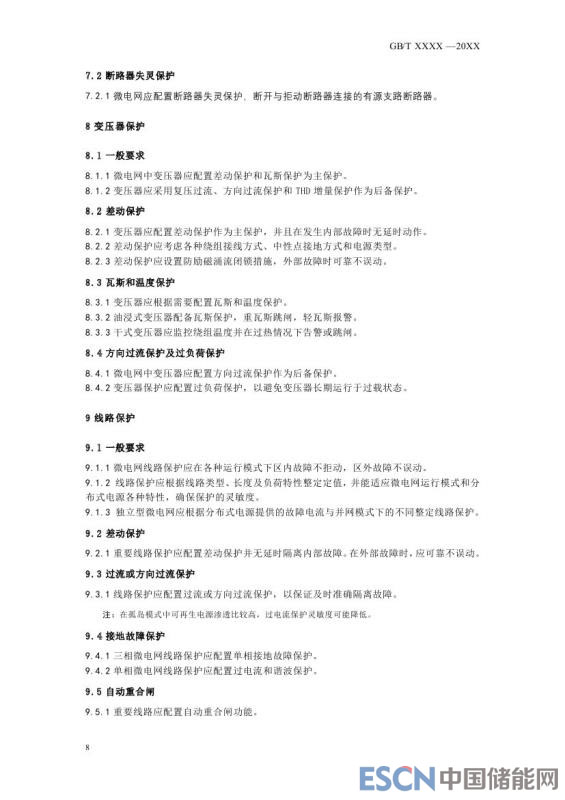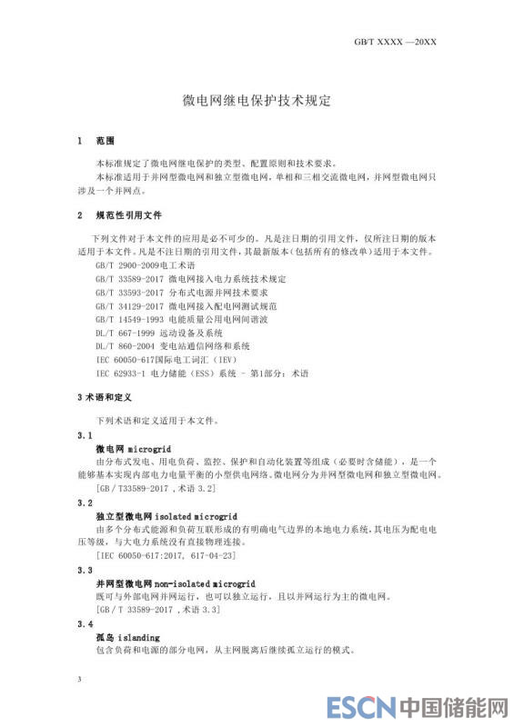 中國儲能網(wǎng)訊:近日獲悉,中電聯(lián)標(biāo)準(zhǔn)化管理中心發(fā)布關(guān)于征求國家標(biāo)準(zhǔn)《微電網(wǎng)繼電保護(hù)技術(shù)規(guī)定》意見的函,其中《微電網(wǎng)繼電保護(hù)技術(shù)規(guī)定》征求意見稿中提到:由分布式發(fā)電、用電負(fù)荷、監(jiān)控、保護(hù)和自動化裝置等組成(必要時含儲能),是一個能夠基本實現(xiàn)內(nèi)部電力電量平衡的小型供電網(wǎng)絡(luò)。微電網(wǎng)分為并網(wǎng)型微電網(wǎng)和獨立型微電網(wǎng)。微電網(wǎng)儲能元件作為分布式發(fā)電的一種特殊形式,既可以表現(xiàn)為負(fù)荷特性也可以表現(xiàn)為電源特性,其保護(hù)的要求和配置應(yīng)考慮電力儲能裝置雙重特性。