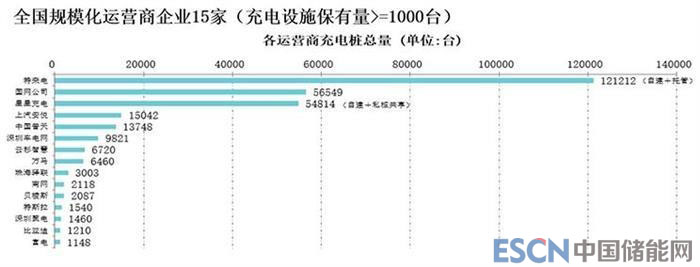 公共充電基礎(chǔ)設(shè)施運(yùn)營商運(yùn)行情況來看,截止到2018年底,30萬臺(tái)公共充電基礎(chǔ)設(shè)施中,特來電運(yùn)營12.1萬臺(tái)、國網(wǎng)運(yùn)營5.7萬臺(tái)、星星充電運(yùn)營5.5萬臺(tái)、上汽安悅運(yùn)營1.5萬臺(tái)、中國普天運(yùn)營1.4萬臺(tái),這五家運(yùn)營商占總量的87.2%,其余的運(yùn)營商占總量的12.8%。