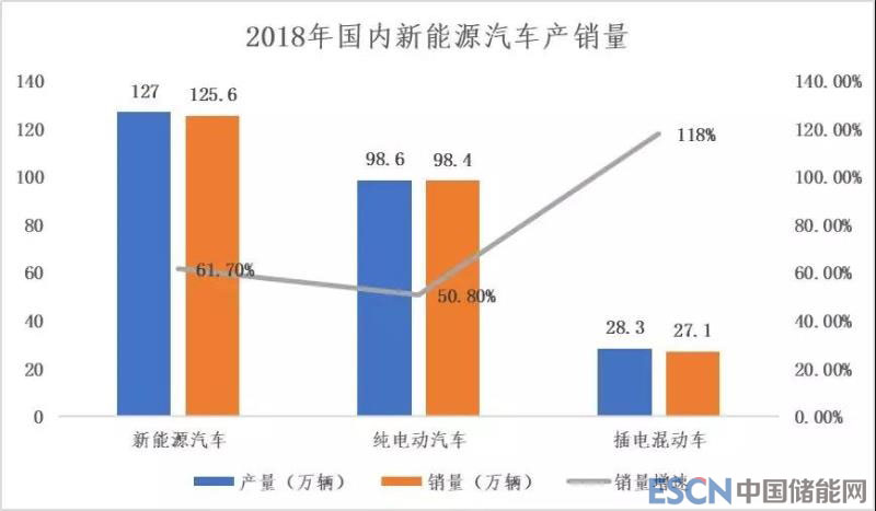國發(fā)能研院、綠能智庫梳理數(shù)據(jù)表明,2018年全球新能源汽車銷售量超過200萬輛。截至2018年底,全球新能源汽車?yán)塾?jì)銷售量達(dá)到550萬輛,中國占比超過53%。2018年,我國新能源汽車(包含乘用車和商用車)產(chǎn)銷量分別為127萬輛和125.6萬輛,同比增長(zhǎng)59.9%和61.7%;純電動(dòng)汽車產(chǎn)銷分別完成98.6萬輛和98.4萬輛,同比增長(zhǎng)47.9%和50.8%;插電式混合動(dòng)力汽車產(chǎn)銷量為28.3萬輛和27.1萬輛,同比增長(zhǎng)122%和118%。其中,新能源乘用車占據(jù)總銷量的約75%,全年銷量超過100萬輛,新能源客車占比約17%,新能源貨車占比約7%。2018年,插電混動(dòng)車產(chǎn)銷量增速超過純電動(dòng)車一倍以上,銷量占比從2017年的約16%上升到2018年的21.6%,提升明顯。
