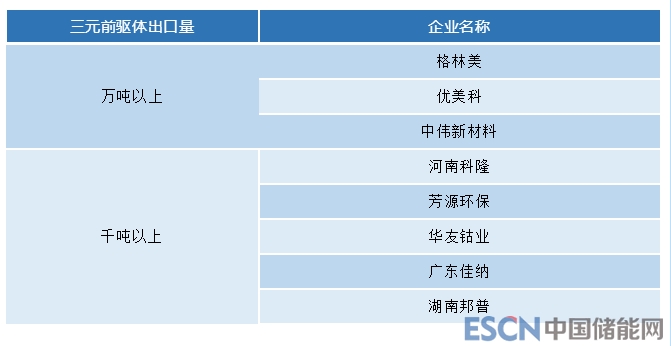 2018年格林美、優(yōu)美科以及中偉新材料均有萬(wàn)噸以上的三元前驅(qū)體出口量,而河南科隆、華友鈷業(yè)以及芳源環(huán)保等企業(yè)也有數(shù)千噸的三元前驅(qū)體出口至日韓等國(guó)。