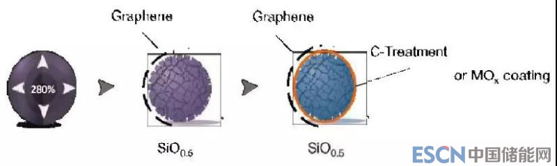 SiNode的技術(shù)是獨有的硅合金-石墨烯結(jié)構(gòu)。17年SiNode開發(fā)了一種新型碳包覆方法,用于在石墨烯包裹之前穩(wěn)定SiOx活性顆粒的表面和SEI膜。通過碳包覆,SiOx(i.e.,>1500 mAh/g)的首效超過79%,非常接近目標(biāo)值80%?,F(xiàn)在可以月生產(chǎn)2kg。