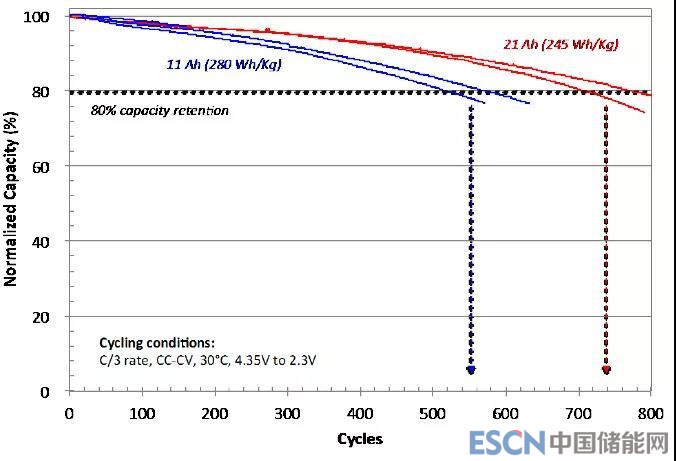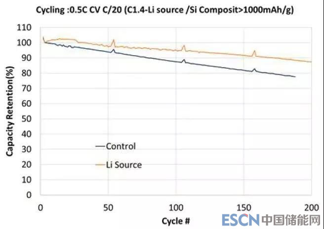通過預(yù)鋰工藝,可以大大改善硅負(fù)極的循環(huán)性能(見下圖)。項目最終電池的容量為60Ah。