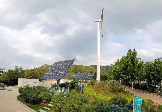 國網(wǎng)山東電力科學研究院開發(fā)的10千瓦光伏逐日發(fā)電系統(tǒng)和200千瓦水平軸風力發(fā)電系統(tǒng)。 李滿 攝