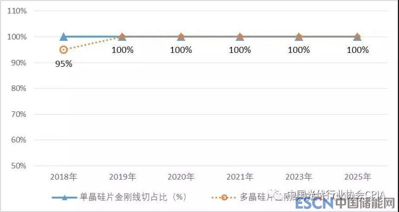 2018年,多晶硅片黑硅制絨工藝逐步成熟,并大量導(dǎo)入生產(chǎn),金剛線在多晶領(lǐng)域的應(yīng)用速度在加速。2018年多晶硅片切片基本被金剛線切片取代,預(yù)計2019年將全面被取代。