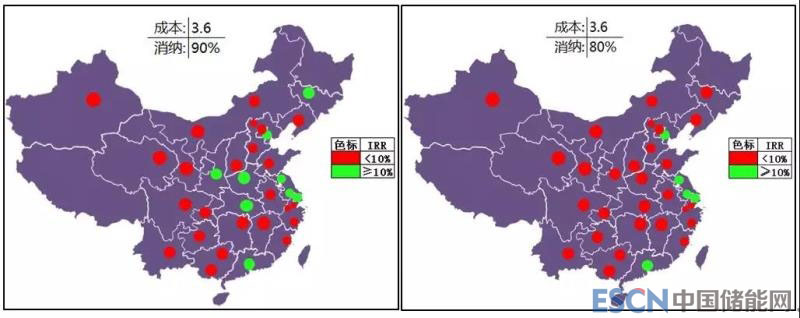 80%自用比例下有12個(gè)的城市(地區(qū))滿足收益率要求:蒙西、蒙東、冀北、鄭州、濟(jì)寧、長春、連云港、蘇州、上海、深圳。