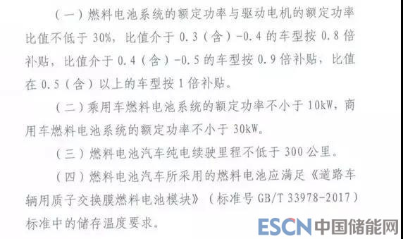 其中燃料電池乘用車按照搭載燃料電池系統(tǒng)的額定功率進(jìn)行補(bǔ)貼,補(bǔ)貼標(biāo)準(zhǔn)為6000元/KW,最高可達(dá)20萬(wàn)元/輛,燃料電池輕型客車、貨車定額補(bǔ)貼30萬(wàn)元/輛,燃料電池大中型客車、中重型貨車定額補(bǔ)貼50萬(wàn)元/輛。納入補(bǔ)貼的燃料電池汽車要滿足以下技術(shù)要求: