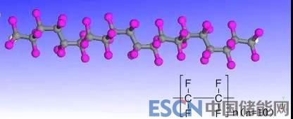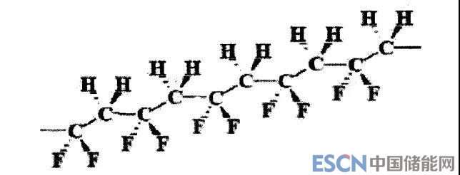 PTFE單體的分子式是(—CF2—CF2),PTFE具有良好的粘結性,能夠在電極基體中形成一種彈性的網(wǎng)狀結構,在這種結構中,活性物質(zhì)不但彼此接觸良好,有利于電子的傳導,還可以對抗由于電極充放電造成的膨脹和收縮,能夠改善鋰電池的放電性能和儲存壽命。PTFE在生產(chǎn)工藝是比PVDF簡單,儲存方法上要求也比較低,成本上比PVDF要低,且對環(huán)境友好。