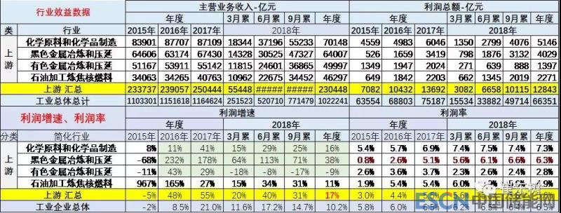 2018年1-12月份,上游行業(yè)的銷售收入和利潤(rùn)都是爆發(fā)式增長(zhǎng),尤其是以煉鋼和石油價(jià)格等為代表的銷售利潤(rùn)率爆發(fā)式的增長(zhǎng),化工原料和煉鋼等行業(yè)利潤(rùn)達(dá)到7%。