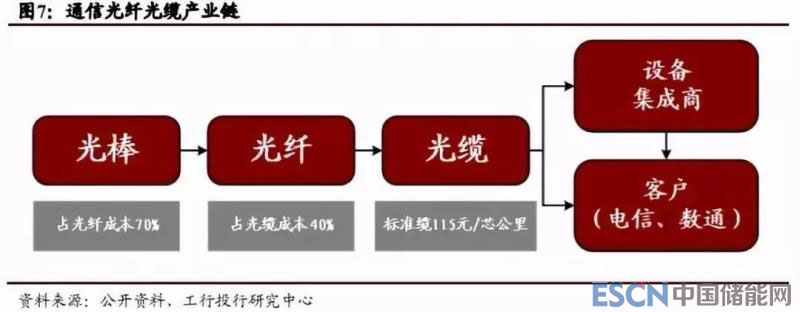 通信光纖光纜包括光纖與光纜兩種產(chǎn)品。光纖是由中心折射率較高的纖芯與折射率較低的包層組成,通過全反射原理在光纖內(nèi)傳播光信號。光纜則是為了滿足實際應(yīng)用環(huán)境需求的性能規(guī)范而制造的,利用光纖作為傳輸媒介,加上防水、絕緣及多種加強元件,組成適應(yīng)不同場景的不同結(jié)構(gòu)光纜,從而保護光纖在特定的環(huán)境條件下穩(wěn)定的傳輸光信號。通信光纖光纜的整體產(chǎn)業(yè)鏈情況如下圖所示: