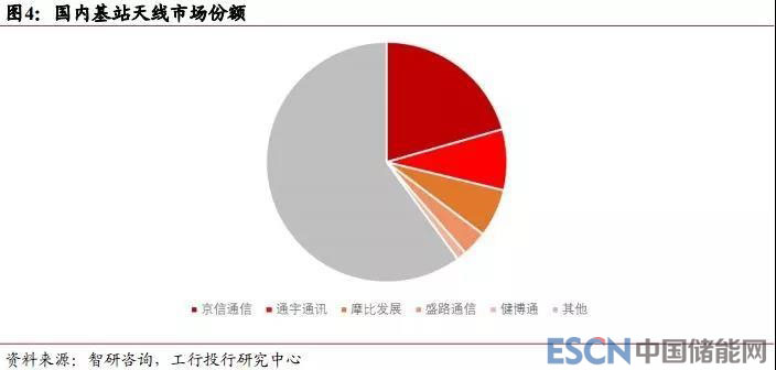 基站天線市場規(guī)模2017年達到72億,預(yù)計2018年突破100億。5G時期基站天線投資規(guī)模將遠超4G,預(yù)計從2019年投資周期開啟,2020年-2022年達到高峰,年均投資額超過100億,之后逐漸回落,總投資額達到約500億元規(guī)模水平。國內(nèi)基站天線生產(chǎn)企業(yè)數(shù)量較多、同質(zhì)化競爭激烈,具有一定研發(fā)實力和國際競爭力的核心企業(yè)主要有:京信通信,通宇通訊、摩比發(fā)展、盛路通信;行業(yè)內(nèi)參與者還有:健博通、齊星鐵塔、梅泰諾,虹信通信等;此外,華為采取代工生產(chǎn)的方式已經(jīng)占有25%的市場份額,5G時代市場競爭優(yōu)勢更加明顯。