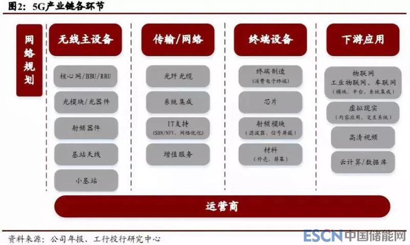 中國儲能網(wǎng)訊:4G改變生活,5G改變社會”,性能全面提升的移動通信網(wǎng)絡(luò)將對社會產(chǎn)生深刻的影響,5G不僅是產(chǎn)業(yè)鏈下一波投資高峰的主題邏輯,更是未來幾年內(nèi)涵蓋全社會的投資基調(diào)和方向。預(yù)計5G總投資規(guī)模將達到1.3萬億以上,整體上出現(xiàn)前松后緊的漸進式節(jié)奏。本文將較為詳細梳理5G相關(guān)產(chǎn)業(yè)鏈中各環(huán)節(jié)中目前的技術(shù)發(fā)展情況,并分析產(chǎn)業(yè)鏈各環(huán)節(jié)的國內(nèi)市場及重要企業(yè)。