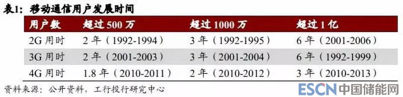 移動通信技術(shù)更迭的特點決定了新技術(shù)應(yīng)用比舊技術(shù)更加迅速,全球4G從2012年進入快速發(fā)展期,4G用戶超過1億人僅用3年,是2G/3G發(fā)展時間的一半,用戶滲透速度明顯加快。