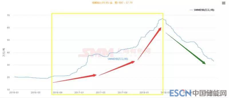 鈷,是生產(chǎn)耐熱合金、硬質(zhì)合金、防腐合金、磁性合金和各種鈷鹽的重要原料,隨著新能源汽車浪潮的到來,作為其動力電池重要材料的鈷一飛沖天,短短兩年的時間,便從2016年中旬19萬元/噸飆升至67萬元/噸(2018年4月)。