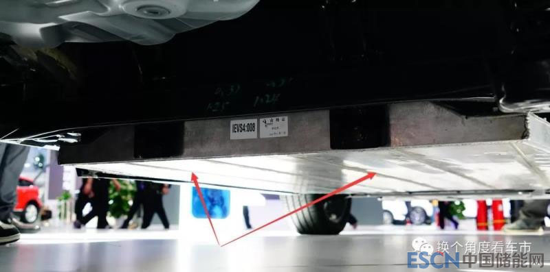 上圖為江淮iEVS4動力電池鋁合金下殼體細節(jié)特寫。電池外殼體的銘牌也標注了供應商為華霆動力(為江淮iEV7S以及其他車型的動力電池總成供應商),而在售的江淮iEV7S動力電池雖然也是同一供應商提供,卻采用未進行輕量化的鐵殼體構(gòu)成。