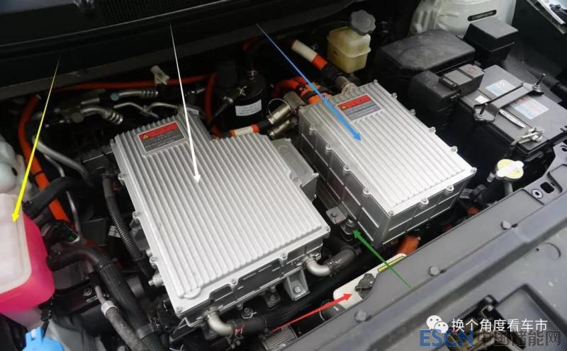 綠色箭頭:高壓配電模塊(充電機在其下)