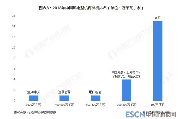 截止2019年1月20日,中國風能協會統計了22家風機制造商所提交的數據,整理出2018年中國風電整機商裝機排名,其中金風科技不出意外的排名首位。
