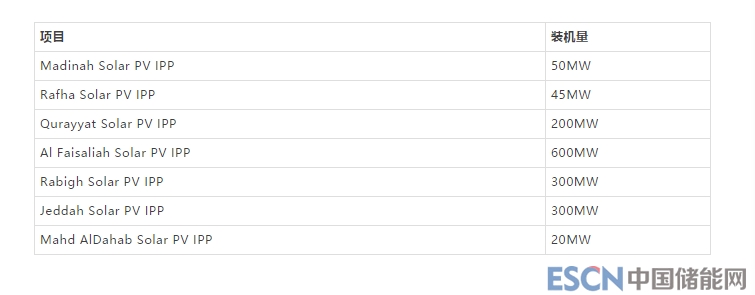 裝機(jī)量項(xiàng)目被分為20-600MW不等的七個(gè)項(xiàng)目。
