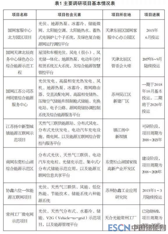 筆者重點調研了天津、江蘇、廣東地區(qū)開展綜合能源服務的五家企業(yè),涉及近十個綜合能源服務項目。從調研結果看,國網天津公司綜合能源服務推廣初顯成效,國網江蘇公司綜合能源服務進展迅速,南網廣東公司正積極探索園區(qū)級示范項目,協(xié)鑫全面布局“源網售用云”均已落地,天合光能著力打造“發(fā)儲配用云”能源物聯(lián)網,基本情況見表1。