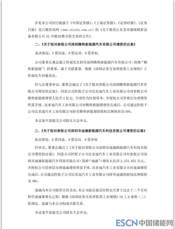 中國(guó)儲(chǔ)能網(wǎng)訊:日前,比亞迪股份(01211)發(fā)布公告,比亞迪股份有限公司董事會(huì)通過了《關(guān)于擬對(duì)參股公司深圳騰勢(shì)新能源汽車有限公司增資的議案》,同意公司控股子公司比亞迪汽車工業(yè)有限公司對(duì)參股公司騰勢(shì)新能源增資人民幣2億元,全部作為注冊(cè)資本,并授權(quán)公司管理層辦理增資所需手續(xù)。此次增資完成后,比亞迪股份有限公司通過控股子公司比亞迪汽車工業(yè)有限公司持有騰勢(shì)新能源的股權(quán)比例保持為50%。