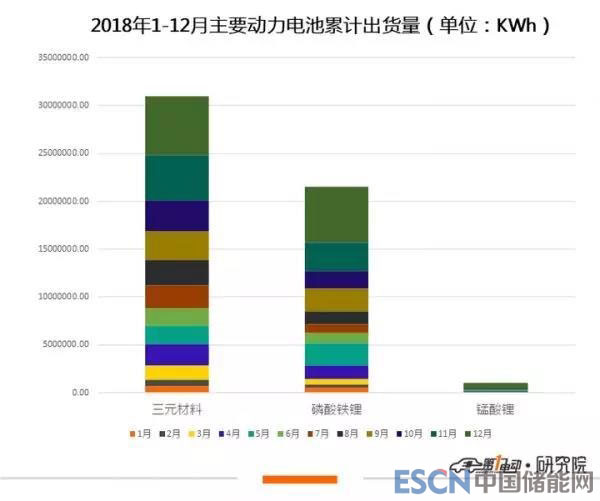 2018年累計(jì)來看,三元鋰電池累計(jì)實(shí)現(xiàn)裝機(jī)30.99GWh,磷酸鐵鋰電池累計(jì)裝機(jī)21.5GWh,在累計(jì)總裝機(jī)量中的比重分別為54.11%和37.54%。