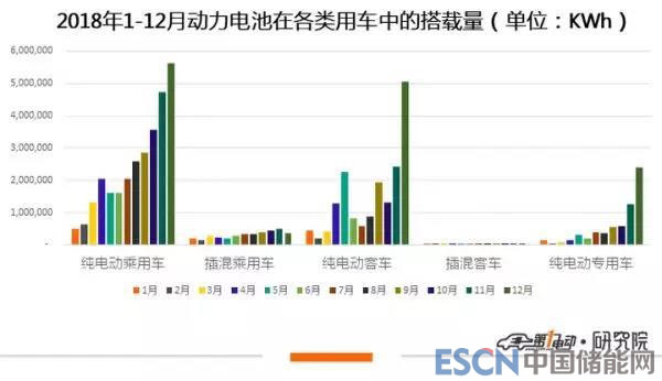 從車輛細(xì)分類別來看,2018年12月電動(dòng)汽車裝機(jī)量的提升主要來源于純電動(dòng)客車及純電動(dòng)專用車。12月純電動(dòng)客車產(chǎn)量為32652輛,環(huán)比大漲101.15%,其裝機(jī)量為5.06GWh,環(huán)比同樣大漲108.39%。純電動(dòng)客車裝機(jī)量占12月總裝機(jī)量的37.4%。