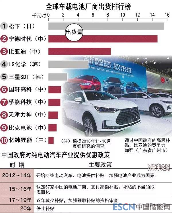 “中國最近的(純電動汽車相關(guān))政策向淘汰技術(shù)實力低下企業(yè)的方向轉(zhuǎn)變。必須在(2020年的)補貼制度取消之前進一步提高競爭力”,一名比亞迪的高管透露出危機感。比亞迪在全球車載電池市場上份額排在第3。
