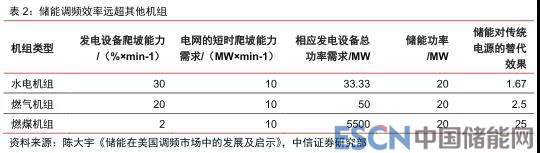 頻率的變化會(huì)對(duì)發(fā)電及用電設(shè)備的安全高效運(yùn)行及壽命產(chǎn)生影響,因此頻率調(diào)節(jié)至關(guān)重要。在傳統(tǒng)能源結(jié)構(gòu)中,電網(wǎng)短時(shí)間內(nèi)的能量不平衡是由傳統(tǒng)機(jī)組(在我國(guó)主要是火電和水電)通過(guò)響應(yīng)AGC信號(hào)來(lái)進(jìn)行調(diào)節(jié)的。而隨著新能源的并網(wǎng),風(fēng)光的波動(dòng)性和隨機(jī)性使得電網(wǎng)短時(shí)間內(nèi)的能量不平衡加劇,傳統(tǒng)能源(特別是火電)由于調(diào)頻速度慢,在響應(yīng)電網(wǎng)調(diào)度指令時(shí)具有滯后性,有時(shí)會(huì)出現(xiàn)反向調(diào)節(jié)之類的錯(cuò)誤動(dòng)作,因此不能滿足新增的需求。相較而言,儲(chǔ)能(特別是電化學(xué)儲(chǔ)能)調(diào)頻速度快,電池可以靈活地在充放電狀態(tài)之間轉(zhuǎn)換,成為非常好的調(diào)頻資源。