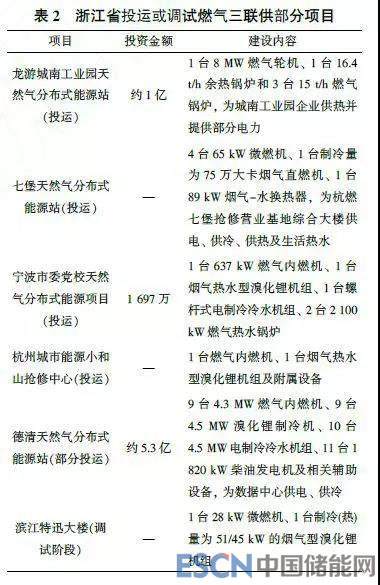 現(xiàn)階段,浙江省燃?xì)饫錈犭娙?lián)供發(fā)展相對(duì)較為落后。截至2017年,臨近浙江省的上海市共計(jì)有約47個(gè)投產(chǎn)的燃?xì)饫錈犭婍?xiàng)目,而臨近的江蘇省投產(chǎn)和核準(zhǔn)的此類項(xiàng)目共有約20個(gè)。而據(jù)不完全統(tǒng)計(jì),浙江省處于建設(shè)或運(yùn)行的區(qū)域型燃?xì)饫錈犭娙?lián)供項(xiàng)目?jī)H2個(gè),處于前期可研規(guī)劃的主—有浙能長(zhǎng)興和平鎮(zhèn)城南工業(yè)園天然氣分布式能源站、海正藥業(yè)(杭州)有限公司天然氣分布式能源、寧波科元塑膠有限公司分布式能源和石浦前塘工業(yè)區(qū)多能互補(bǔ)智慧能源4個(gè)項(xiàng)目。浙江省樓宇型燃?xì)饫錈犭娙?lián)供項(xiàng)目則包含杭燃七堡天然氣分布式能源站、寧波市委黨校天然氣分布式能源項(xiàng)目、杭州城市能源小和山搶修中心、杭州濱江特迅大樓共4個(gè)。在浙江省投資燃?xì)饫錈犭娙?lián)供的企業(yè)主—包括浙能興源投資有限公司、龍游中機(jī)新奧智慧能源有限公司、華電集團(tuán)等。浙江省投運(yùn)或調(diào)試的燃?xì)馊?lián)供部分項(xiàng)目介紹如表2所示。此外,湖州和杭州等地的一些醫(yī):也已積極開展燃?xì)饫錈犭娙?lián)供的規(guī)劃。在國家電力體制改革形勢(shì)下,允許企業(yè)燃?xì)饫錈犭婍?xiàng)目電量自發(fā)自用,甚至余電可向周邊用戶直接交易,此類趨勢(shì)將利于燃?xì)馊?lián)供的發(fā)展。