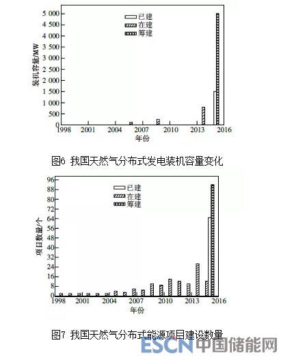 就國內(nèi)而言,燃?xì)饫錈犭娙?lián)供研究起步較晚,近年在煤電、水電等平穩(wěn)發(fā)展的情況下,燃?xì)獍l(fā)電裝機(jī)容量卻呈現(xiàn)大幅增長(zhǎng)?!短烊粴夥植际侥茉串a(chǎn)業(yè)發(fā)展報(bào)告2016》中指出,我國近幾年燃?xì)夥植际桨l(fā)電裝機(jī)容量和燃?xì)夥植际侥茉错?xiàng)目建設(shè)數(shù)量隨時(shí)間變化如圖6和圖7所示。