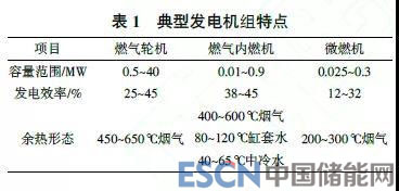 燃?xì)饫錈犭娙?lián)供按照供能對(duì)象可分為區(qū)域型和樓宇型。區(qū)域型一般適用于冷、熱、電需求較大的工業(yè)園區(qū)和大型商務(wù)區(qū)等曰樓宇型一般適用于二次能源需求性質(zhì)相近且用戶相對(duì)集中的樓宇(群),包括賓館、學(xué)校、醫(yī):等。按發(fā)電機(jī)組不同主—可分為燃?xì)廨啓C(jī)、燃?xì)鈨?nèi)燃機(jī)、微燃機(jī)3種,3類典型發(fā)電機(jī)組特點(diǎn)如表1所示。