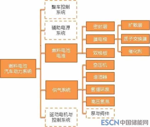 除電堆外,車用燃料電池系統(tǒng)中還需裝備空壓機、輔助電源系統(tǒng)(鋰電或鉛酸電池)、儲氫瓶、氫氣循環(huán)泵及電機驅(qū)動與控制系統(tǒng)等。