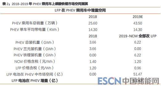 磷酸鐵鋰 在 PHEV 乘用車市場空間分析