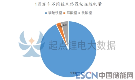 1月比亞迪客車電池裝機(jī)量為169.9MWh,同比增長達(dá)17236.7%,全部為磷酸鐵鋰電池,主要供應(yīng)自家車型。