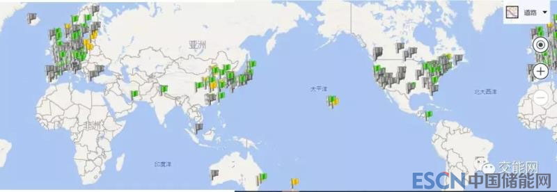 2018年,氫能的發(fā)展則更加迅猛,不斷有加氫站建成。截止到2018年年底,日本加氫站達(dá)到100座以上,德國(guó)加氫站數(shù)量達(dá)到69座,同時(shí)除德國(guó)外,其它歐洲地區(qū)也加快了氫能基礎(chǔ)設(shè)施的研究建設(shè)步伐。下圖展示了全球加氫站分布地圖,其中灰色及綠色表示已建成,黃色表示在建: