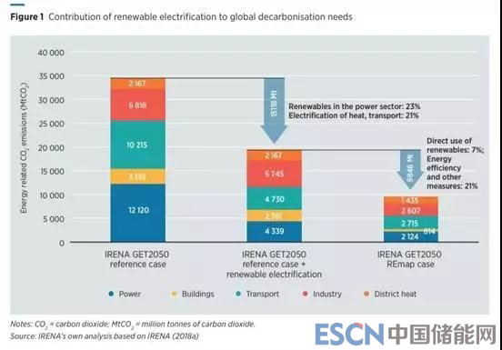 IRENA預(yù)測(cè),2050年全球可以使用十億輛電動(dòng)汽車,使用熱泵的供暖的建筑物可能會(huì)增加十倍,數(shù)量可能超過(guò)2.5億臺(tái)。