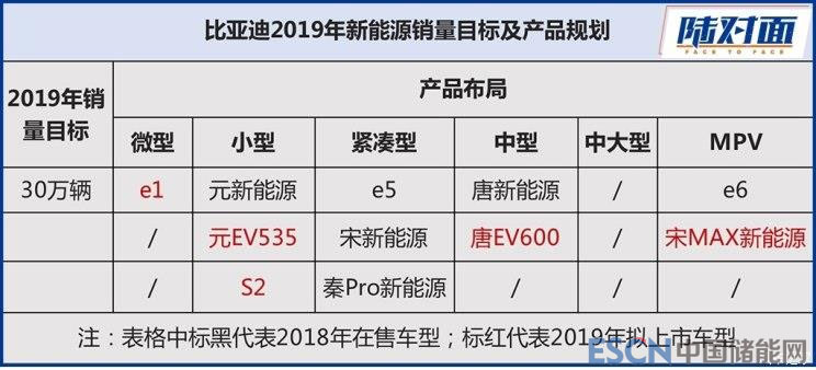 “2019年新能源汽車市場將繼續(xù)呈現(xiàn)爆發(fā)的趨勢,每個細分市場都存在機會?!蓖鮽鞲;谶@個判斷,決定今年比亞迪在新能源領域要采取全線開花的戰(zhàn)略,微型、小型、中型和MPV都布局了1-2款新車,并把全年新能源車銷售目標定在了30萬輛,企業(yè)整體銷量目標為65萬輛,這一數(shù)字相比2018年增長了24.8%。