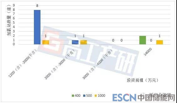 三級(jí)加氫站的投資規(guī)模(萬元)分布