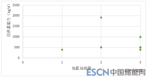 不同級(jí)別加氫站的日供氫能力(kg/d)分析