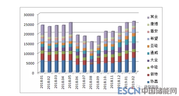 圖2:2018年1月-2019年2月國內(nèi)多晶硅分企業(yè)產(chǎn)量