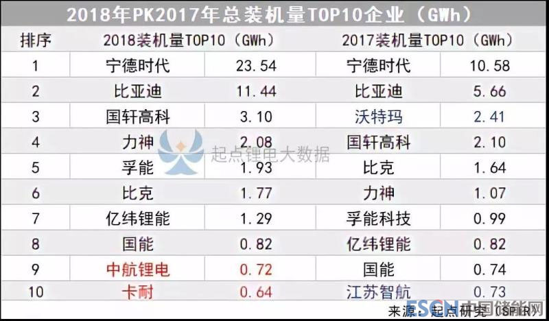 根據(jù)起點(diǎn)研究院公布的數(shù)據(jù),2018年動(dòng)力電池裝機(jī)量排名前十的為以下企業(yè):
