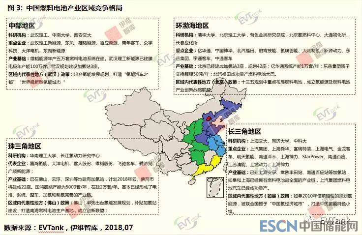從產(chǎn)業(yè)發(fā)展來(lái)看,EVTank在白皮書(shū)中分析認(rèn)為在燃料電池產(chǎn)業(yè),中國(guó)目前已經(jīng)形成了一定的產(chǎn)業(yè)集群和有顯著特色的燃料電池聚集城市。從區(qū)域競(jìng)爭(zhēng)格局來(lái)看,和其他產(chǎn)業(yè)一樣,燃料電池產(chǎn)業(yè)已經(jīng)在環(huán)渤海、長(zhǎng)三角、珠三角等區(qū)域形成了明顯的產(chǎn)業(yè)集群,且在上述區(qū)域基本已經(jīng)形成了完善的燃料電池產(chǎn)業(yè)鏈。但是EVTank分析認(rèn)為,燃料電池的區(qū)域競(jìng)爭(zhēng)格局還存在著與其他產(chǎn)業(yè)不同的地方,首先,以武漢為代表的中西部地區(qū)在燃料電池產(chǎn)業(yè)發(fā)展中搶占了先機(jī),躋身燃料電池產(chǎn)業(yè)發(fā)展第一梯隊(duì);其次,中國(guó)燃料電池產(chǎn)業(yè)的發(fā)展形成了以如皋和佛山為代表的特色燃料電池發(fā)展基地,甚至在某些環(huán)節(jié)發(fā)展勢(shì)頭強(qiáng)過(guò)北京、上海和深圳等經(jīng)濟(jì)發(fā)達(dá)城市。EVTank預(yù)測(cè)未來(lái)中國(guó)燃料電池產(chǎn)業(yè)的發(fā)展有可能重塑傳統(tǒng)的產(chǎn)業(yè)區(qū)域競(jìng)爭(zhēng)格局,更多特色城市有望脫穎而出。