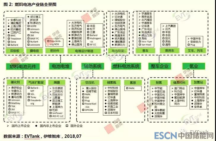 在《中國(guó)燃料電池產(chǎn)業(yè)發(fā)展白皮書(shū)(2018)》中,EVTank詳細(xì)梳理了燃料電池產(chǎn)業(yè)鏈全景圖,包括上游的燃料電池關(guān)鍵零部件,到燃料電池電堆及燃料電池系統(tǒng),最后到燃料電池的應(yīng)用領(lǐng)域及加氫站基礎(chǔ)設(shè)施建設(shè)等環(huán)節(jié)。EVTank分析認(rèn)為目前中國(guó)目前已經(jīng)基本形成了完善的燃料電池產(chǎn)業(yè)鏈,在燃料電池的關(guān)鍵環(huán)節(jié)如催化劑、雙極板、質(zhì)子交換膜等領(lǐng)域均已經(jīng)完成了小批量試制階段,即將迎來(lái)大規(guī)模量產(chǎn)。在燃料電池系統(tǒng)和應(yīng)用環(huán)節(jié),中國(guó)與國(guó)外的差距正在逐步縮小。