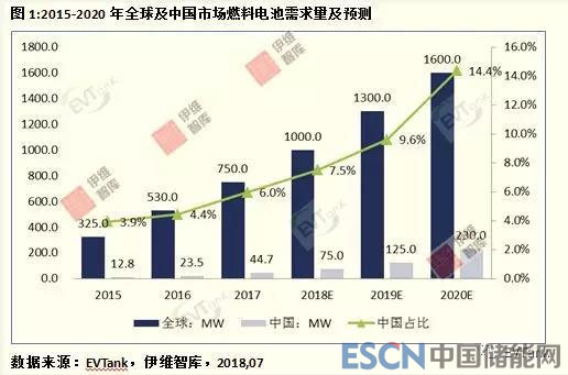 中國(guó)儲(chǔ)能網(wǎng)訊:近日,研究機(jī)構(gòu)EVTank聯(lián)合伊維經(jīng)濟(jì)研究院在北京發(fā)布了《中國(guó)燃料電池產(chǎn)業(yè)發(fā)展白皮書(shū)(2018)》,白皮書(shū)數(shù)據(jù)顯示2017年中國(guó)市場(chǎng)燃料電池實(shí)際需求量達(dá)到44.7MW,同比增長(zhǎng)幅度達(dá)到90.2%,創(chuàng)歷史新高。EVTank分析認(rèn)為中國(guó)燃料電池市場(chǎng)需求量快速增長(zhǎng)的主要原因在于汽車(chē)領(lǐng)域?qū)θ剂想姵匦枨罅康谋┰觯?017年中國(guó)燃料電池汽車(chē)產(chǎn)量由2015年的10輛增加到2017年1247輛,而固定式和便攜式領(lǐng)域燃料電池在中國(guó)市場(chǎng)的需求量仍進(jìn)展緩慢。對(duì)于燃料電池的發(fā)展前景,伊維經(jīng)濟(jì)研究院分析師趙滿祥認(rèn)為隨著中國(guó)燃料電池汽車(chē)市場(chǎng)的快速增長(zhǎng),2020年中國(guó)市場(chǎng)燃料電池的需求量將達(dá)到230.0MW,占全球的市場(chǎng)的比重由2015年的3.9%上升到14.4%。屆時(shí),中國(guó)將成為全球主要的燃料電池生產(chǎn)和銷(xiāo)售國(guó)。
