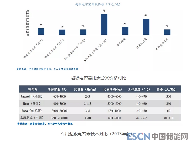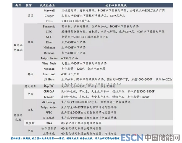 超級電容器在歐洲、美國、日本等發(fā)達國家起步較早,技術(shù)相對成熟,目前國內(nèi)出現(xiàn)了上海奧威、錦州富辰、北京合眾匯能等企業(yè),雖然整體水平與國外存在差距,但部分企業(yè)技術(shù)領(lǐng)先,如上海奧威公司,產(chǎn)品性能與國際先進水平逐步縮小。其中,國產(chǎn)電容炭的性能指標和穩(wěn)定性已經(jīng)可與進口炭媲美,但是Maxwell的干電極技術(shù)壁壘尚未突破。