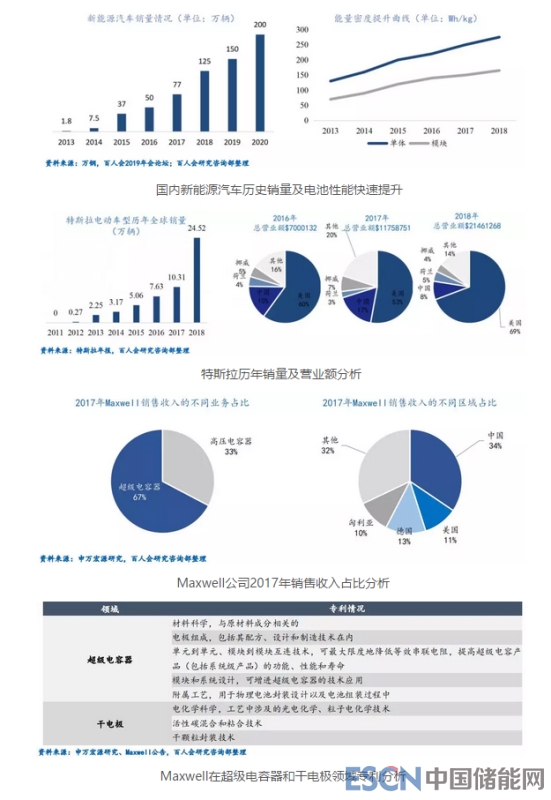 特斯拉收購Maxwell事件,有助于其新動力電池研發(fā)及混合儲能技術(shù)的提升。特斯拉和Maxwell分別是電動汽車和超級電容器行業(yè)的龍頭企業(yè),本次收購?fù)瓿珊螅兄趦杉夜緲I(yè)務(wù)相互增強,同時為超級電容器在車用儲能中的應(yīng)用創(chuàng)造了新一輪熱潮,一方面,特斯拉可以吸收Maxwell的超級電容和干電極技術(shù),實現(xiàn)超級電容+鋰離子電池內(nèi)部融合的新動力電池技術(shù)路線,提升電池壽命和能量密度,降低生產(chǎn)成本。另一方面,功率型+能量型混合儲能技術(shù)也是其未來儲能產(chǎn)業(yè)可能用到的技術(shù)之一。同時,Maxwell在中國堅實的業(yè)務(wù)基礎(chǔ),將為特斯拉中國建廠帶來的供應(yīng)鏈合作提供一定程度的支持。