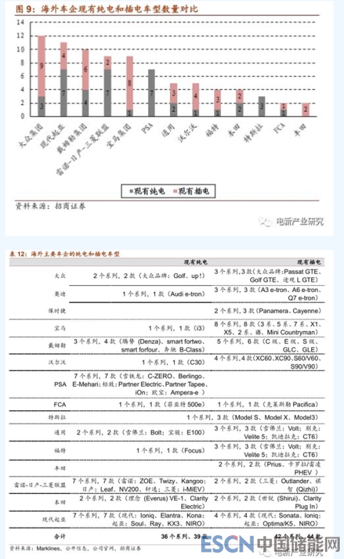 傳統(tǒng)車企的新車型將在2020-2021年密集上市。根據(jù)各車企未來新能源汽車戰(zhàn)略規(guī)劃,海外13大車企集團在2018-2020/2021年期間,將推出的新能源車型數(shù)量將大于82款,年均21款以上。